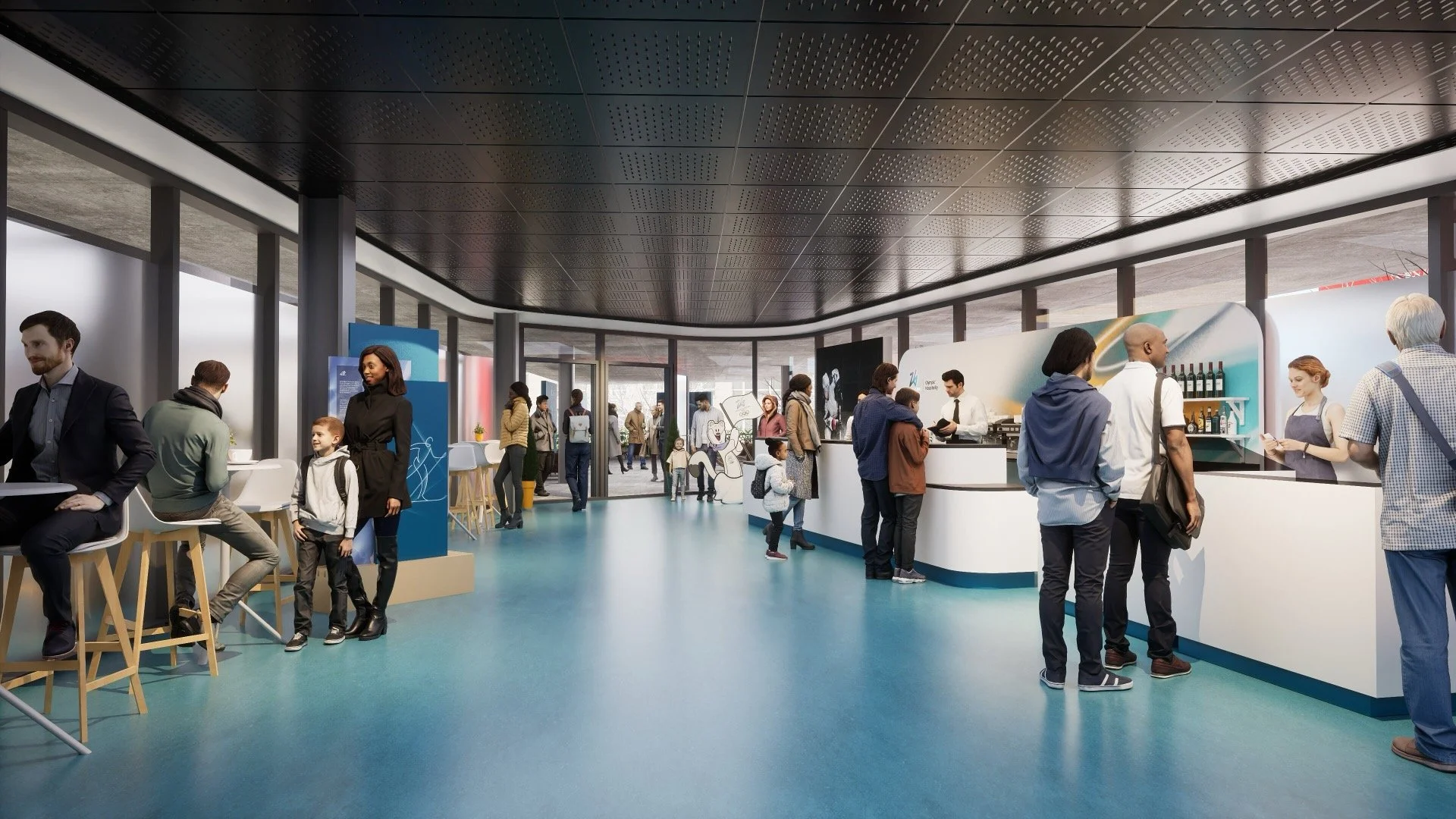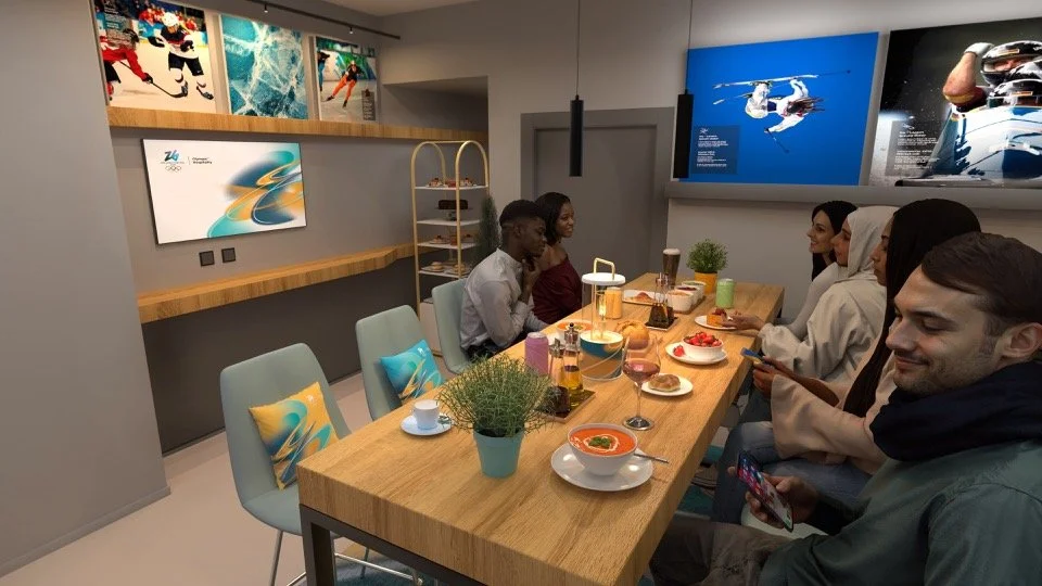 A suite of hospitality graphics developed to apply and extend the official Winter Olympics identity across a premium guest environment. The focus was on translating an established brand system into a cohesive spatial and experiential language that enhanced atmosphere, clarity, and wayfinding throughout the venue.
